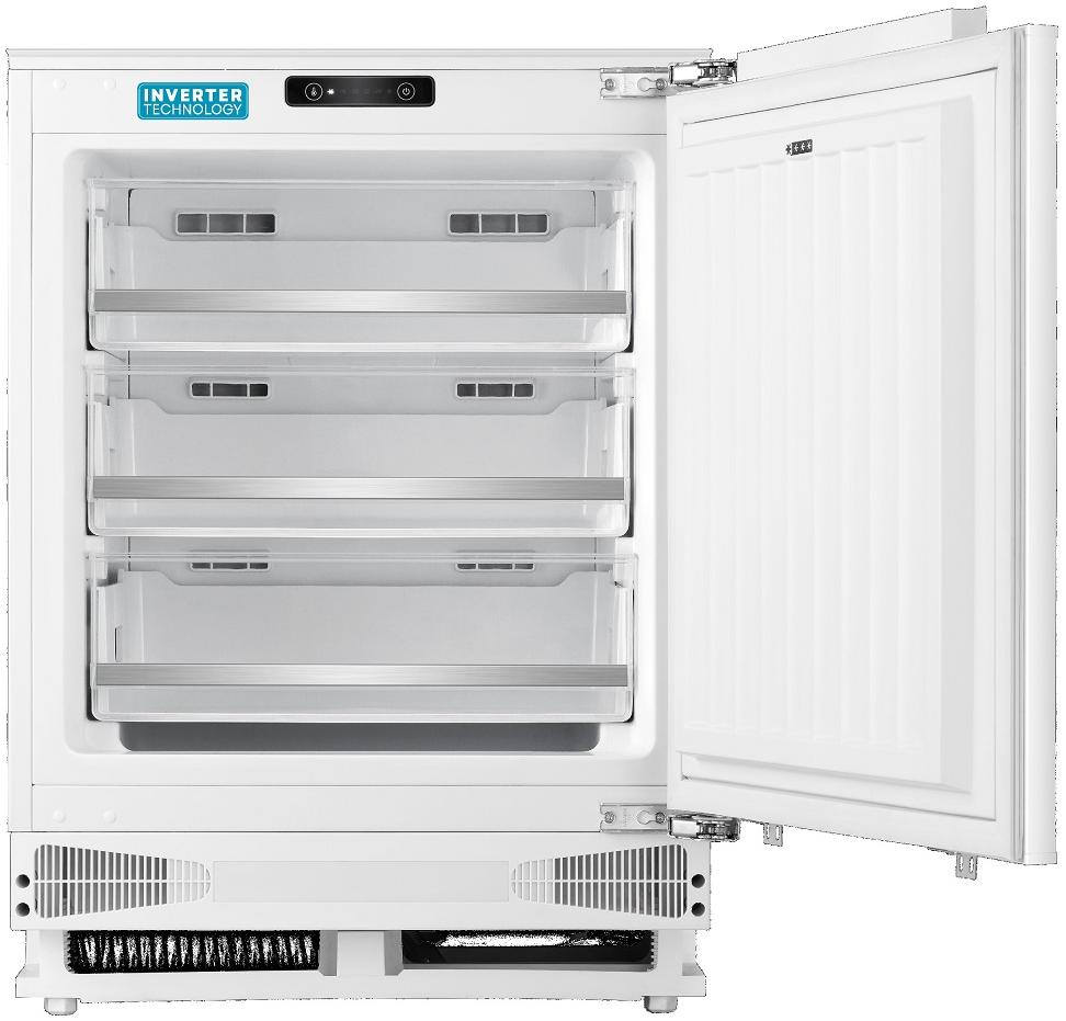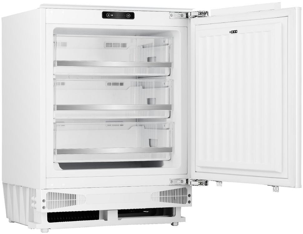 Встраиваемый прибор проще разместить в комнате, даже если общий метраж не такой уж большой. Вы можете спрятать его за декоративной панелью от мебельного фасада — советуем заранее определить нишу и заказывать панели исходя из типа крепления к двери. Способ монтажа в данной модели: жесткое крепление (система door on door) Благодаря компактным размерам, она подойдет даже маленькой кухне. Вы можете поменять направление открывания двери, так как упор переставляемый и ее можно перевесить на другую сторону. Такая функция открывает больше возможностей для установки. Отдельную морозильную камеру чаще всего выбирают для частного дома или дачи, для производства, когда актуально хранение большого объема замороженных продуктов. Советуем обратить внимание на этот вариант. Количество камер: 1.