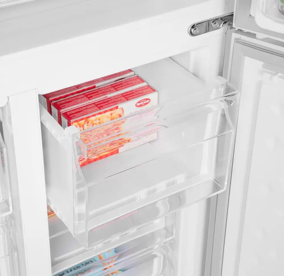 Специальная зона свежести предназначена для правильного и более длительного хранения овощей, фруктов, зелени. В ней поддерживается околонулевая температура, поэтому продукты не перемораживаются и не пересыхают.