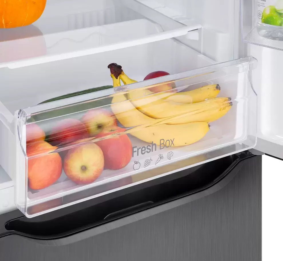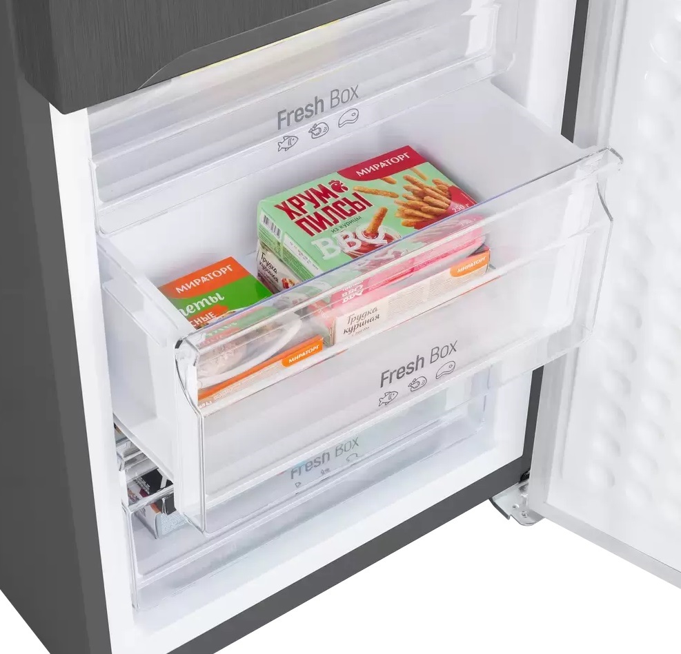 Специальная зона свежести предназначена для правильного и более длительного хранения овощей, фруктов, зелени. В ней поддерживается околонулевая температура, поэтому продукты не перемораживаются и не пересыхают.