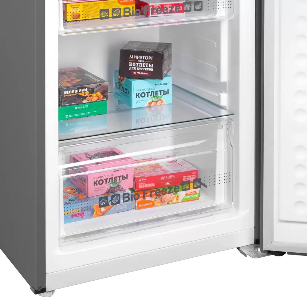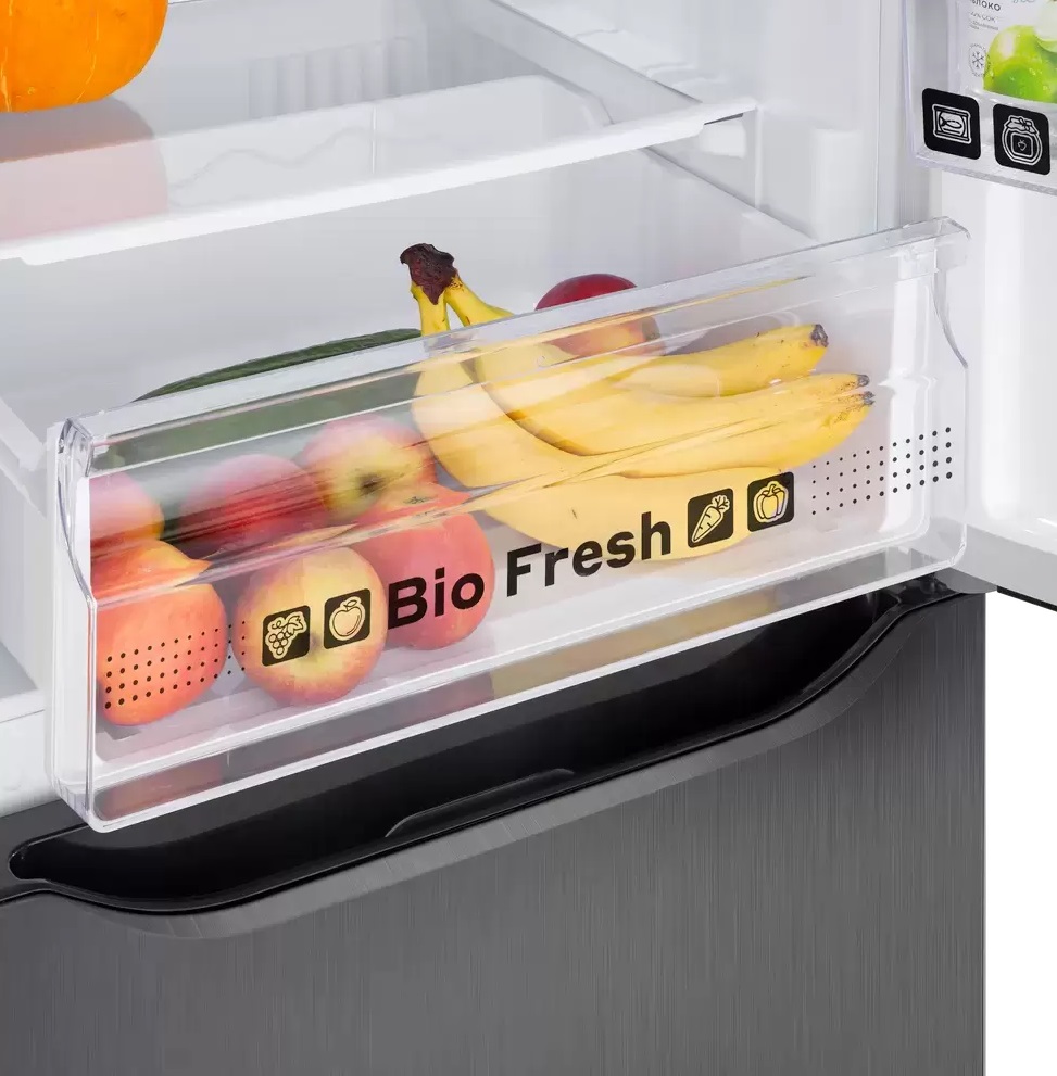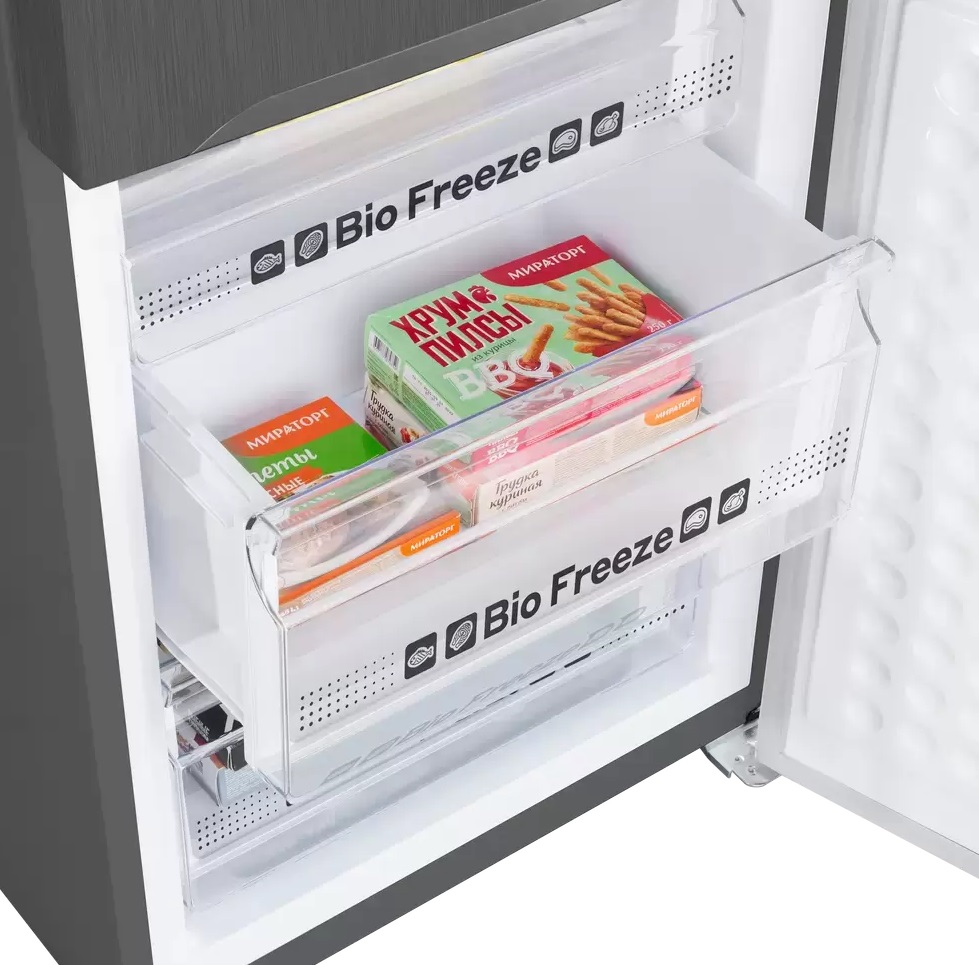 Специальная зона свежести предназначена для правильного и более длительного хранения овощей, фруктов, зелени. В ней поддерживается околонулевая температура, поэтому продукты не перемораживаются и не пересыхают.