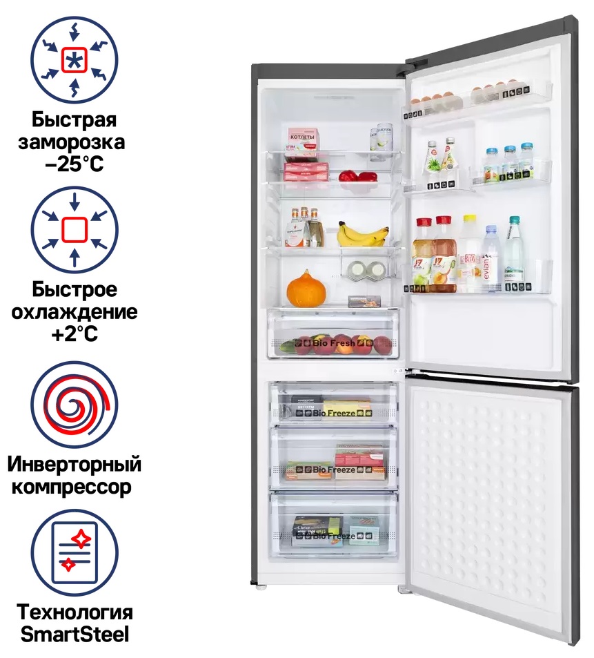 функция суперзаморозки, которая сбережет структуру овощей или ягод, витамины и воду внутри них;