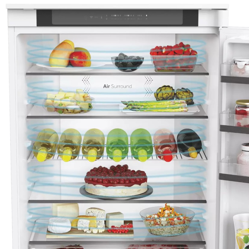 Специальная зона свежести предназначена для правильного и более длительного хранения овощей, фруктов, зелени. В ней поддерживается околонулевая температура, поэтому продукты не перемораживаются и не пересыхают. Система охлаждения этого холодильника — циркуляционная Multi-Airflow-System.