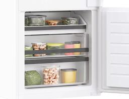 Встраиваемый прибор проще разместить в комнате, даже если общий метраж не такой уж большой. Вы можете спрятать его за декоративной панелью от мебельного фасада — советуем заранее определить нишу и заказывать панели исходя из типа крепления к двери. Способ монтажа в данной модели: скользящее крепление двери (система door sliding) Благодаря внушительным размерам, в частности высоте, она подходит большим пространствам — просторной кухне, еврогостиной. Вы можете поменять направление открывания двери, так как упор переставляемый и ее можно перевесить на другую сторону. Такая функция открывает больше возможностей для установки. Холодильник с морозильником обладает всеми опциями, которые чаще всего ищут и выбирают покупатели. Стандартная конфигурация — универсальный вариант для любой квартиры. Количество камер: 2.