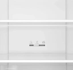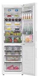 Данная модель — отдельностоящая, поэтому нужно тщательно подобрать место для ее размещения. Благодаря внушительным размерам, в частности высоте, она подходит большим пространствам — просторной кухне, еврогостиной. Вы можете поменять направление открывания двери, так как упор переставляемый и ее можно перевесить на другую сторону. Такая функция открывает больше возможностей для установки. Холодильник с морозильником обладает всеми опциями, которые чаще всего ищут и выбирают покупатели. Стандартная конфигурация — универсальный вариант для любой квартиры. Количество камер: 2.