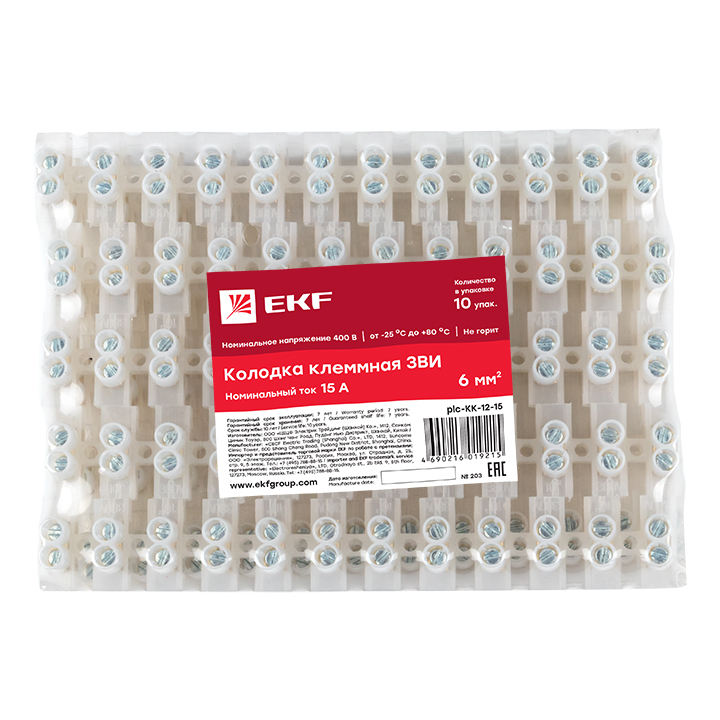 Клеммные колодки (зажим клеммный, 12 секций) EKF PROxima изготовлены из белого полиэтилена и полистирола, не распространяющего горение.Применяются в электрических цепях с номинальным напряжением до 400В и частотой 50 Гц. Предназначены для винтового соединения проводников, исключают возможность замыкания на корпус электроустановки.Колодка легко разрезается на блоки с необходимым количеством клеммных пар. Применяются в электрических цепях переменного тока с номинальным напряжением до 400 В и частотой 50 Гц. Выпускаются белого, черного, синего и желтого цвета.