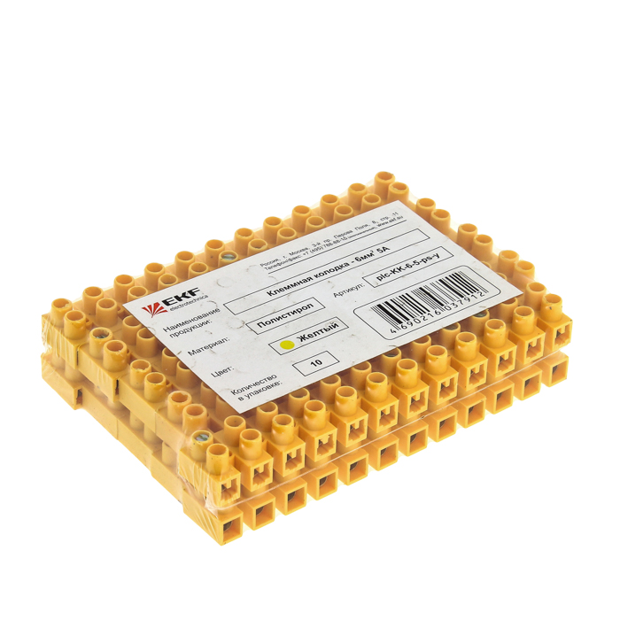 Клеммные колодки (зажим клеммный, 12 секций) EKF PROxima изготовлены из белого полиэтилена и полистирола, не распространяющего горение.Применяются в электрических цепях с номинальным напряжением до 400В и частотой 50 Гц. Предназначены для винтового соединения проводников, исключают возможность замыкания на корпус электроустановки.Колодка легко разрезается на блоки с необходимым количеством клеммных пар. Применяются в электрических цепях переменного тока с номинальным напряжением до 400 В и частотой 50 Гц. Выпускаются белого, черного, синего и желтого цвета.