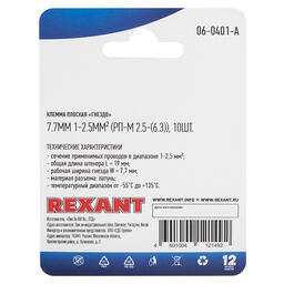 Технические характеристики:- сечение применимых проводов в диапазоне 1-2.5мм²;- общая длина штекера L = 19мм;- рабочая ширина гнезда W = 7.7мм;- материал разъема: латунь;- температурный диапазон от -55℃ до +135℃.
