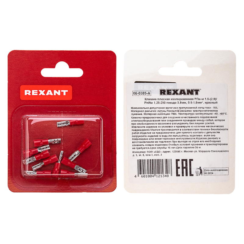 Технические характеристики:- сечением применимых проводов в диапазоне 0.5-1.5мм²;- рабочая ширина гнезда B = 3.8мм;- максимально допустимая величина пропускаемой силы тока - 10А;- материал разъема: латунь;- покрытие разъема: электролитическое лужение;- материал изоляции: ПВХ;- цвет изолятора: красный;- температурный диапазон от -10℃ до +75℃.