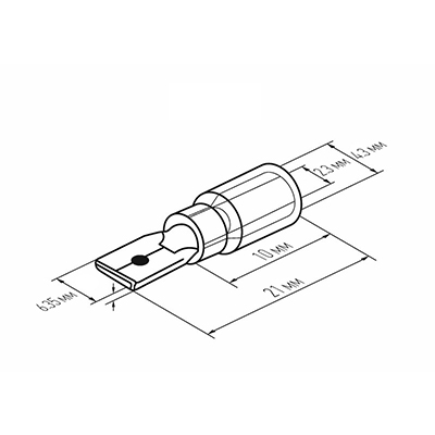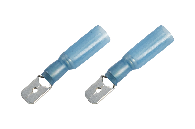 Клемма плоская изолированная термоусаживаемая (КПИт штекер - 6.35 мм) 1.5-2.5 мм² REXANT предназначена для создания качественного подключения электрооборудования или соединения проводов между собой, которое при необходимости, возможно разъединить без лишних усилий. Такая клемма используется для оконцовывания многожильных медных проводов при монтаже мобильных электрических контактных соединений на подвижном составе (автомобиле-, вагоно-, самолето- и судостроении) или в других местах, где важна надежность соединения (к примеру, телефонное или климатическое оборудование). Она состоит из двух компонентов: металлического коннектора (штекер) и защитного термоизолятора. Главной отличительной особенностью такой клеммы является термоусаживаемый изолятор с клеевым внутренним краем, который обеспечит защиту места обжима кабеля от попадания влаги и грязи. Металлический коннектор изготовлен из латуни, с поверхностным электролитическим лужением. Обжатие производится специальными пресс-клещами (ht-301 H арт.12-3014, 12-3014; ht-301 N арт.12-3116; ht-301 W арт.12-3021, 12-3021-4) поверх защитного изолятора. Каждая клемма имеет отверстие, служащее фиксатором замкового типа для более прочного механического соединения с гнездовым разъемом. Цвет изолятора прозрачно-синий. Основные характеристики:Температурный диапазон: -10...+75 ℃Сечение применяемых проводов в диапазоне: 1.5-2.5 мм²Рабочая ширина штекера: B = 6.35 ммМаксимально допустимая величина пропускаемого тока: 15 АПрименение КППИт дает возможность существенно ускорять электромонтажные работы, при этом появляется возможность многократного отсоединения и присоединения проводов.