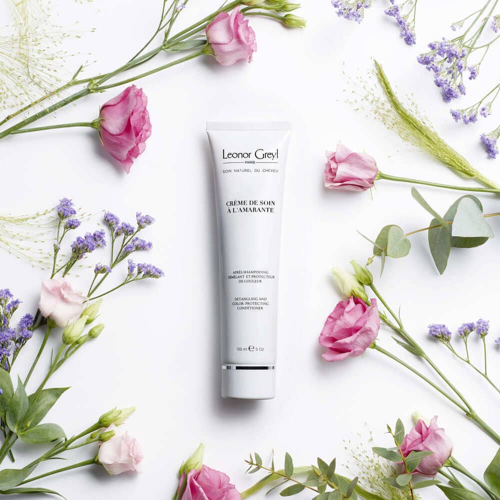 Кондиционер Creme De Soin A L'amarante, изготовленный на 94% из натуральных ингредиентов, распутывает волосы, придает им мягкость и продлевает стойкость цвета после окрашивания. <br>