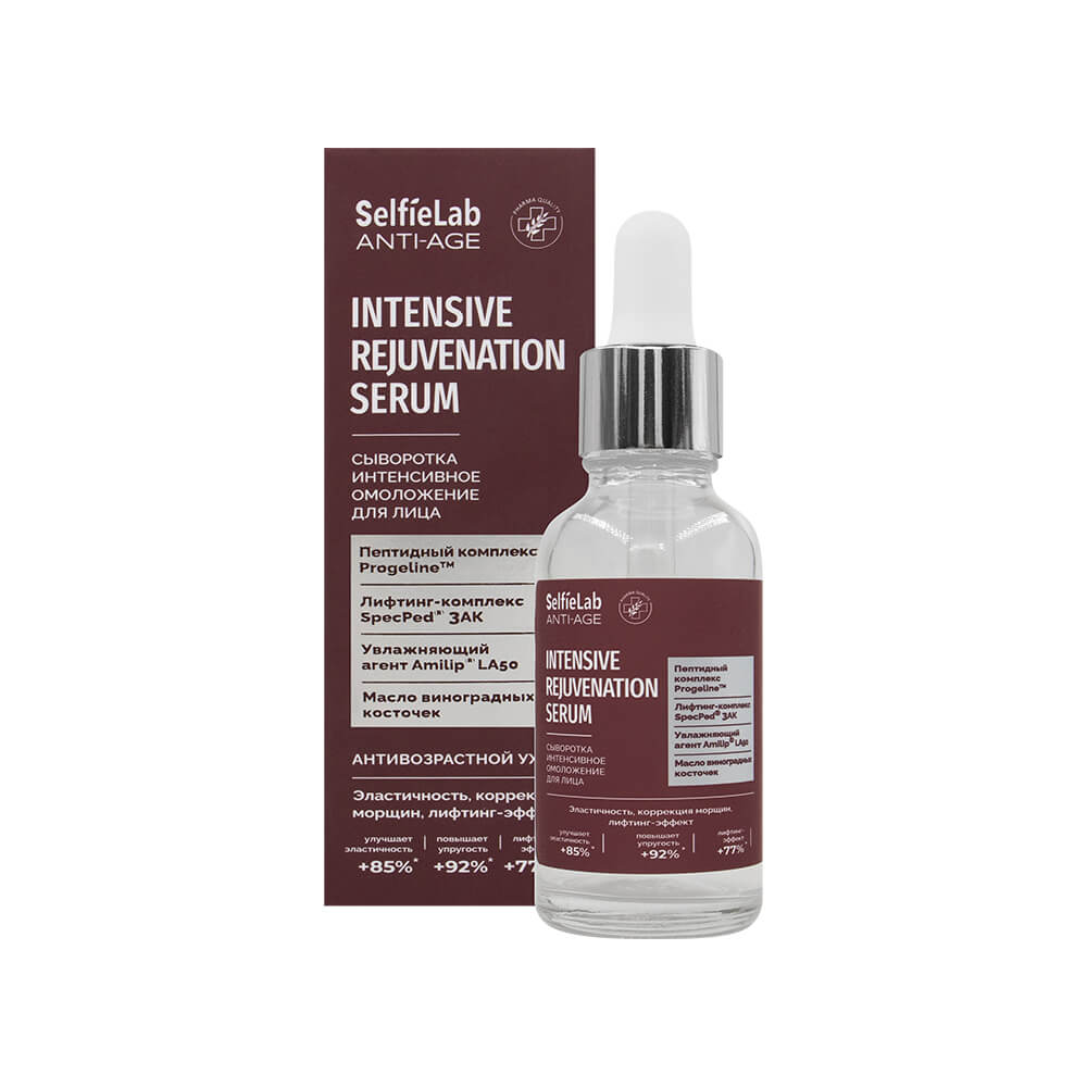 Сыворотка интенсивное омоложение для лица, компоненты которой способствуют замедлению процессов старения кожи. <br>
