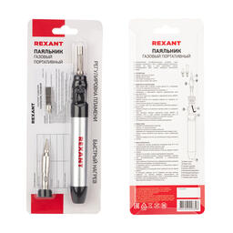 Паяльник газовый портативный 15 мл REXANT предназначен для ручного монтажа радиоэлементов и не требует электропитания. Главной особенностью прибора является работа от газозаправочной смеси. Его удобно использовать в том случае, когда нет возможности подключиться к сети. В комплект поставки входят две сменные насадки, поэтому прибор можно использовать не только как паяльник, но и как горелку. Нагрев осуществляется менее чем за 15 секунд. Основные характеристики:Температура пламени: +400 ºC Рабочая температура жала: +400 ºC Заправляемая емкость: 15 мл Материал корпуса: металл + АВС пластик Габаритная длина: 150 мм Средний расход топлива: 7.2 г/ч