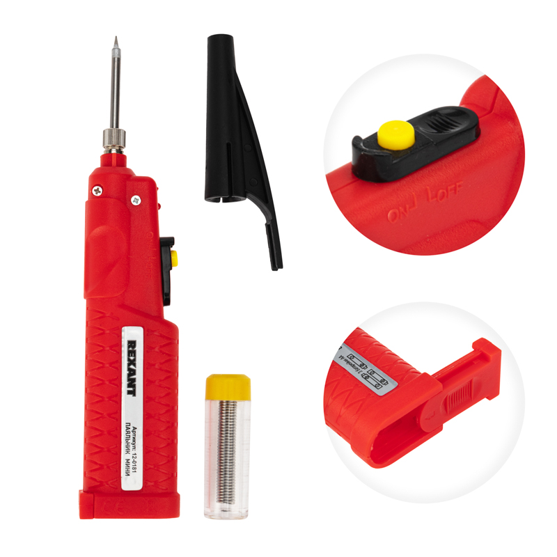 Паяльник на батарейках Мини для работы или хобби. Напряжение питания паяльника 4.5 V/8 Вт от 3 батареек АА. Его удобно использовать в том случае, когда нет возможности подключиться к сети. Имеет сверхкомпактный размер. В комплект поставки входит специальный защитный колпачок и припой. Нагрев осуществляется менее чем за 15 секунд.