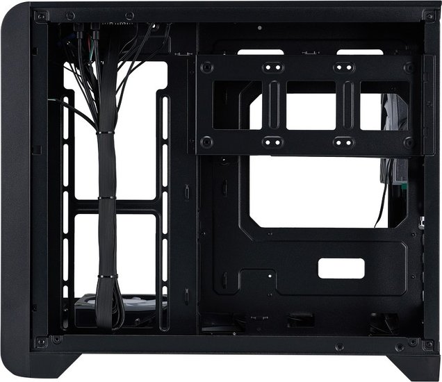 • Расположение блока питания за материнской платой