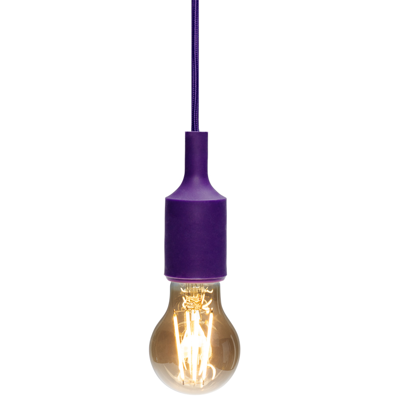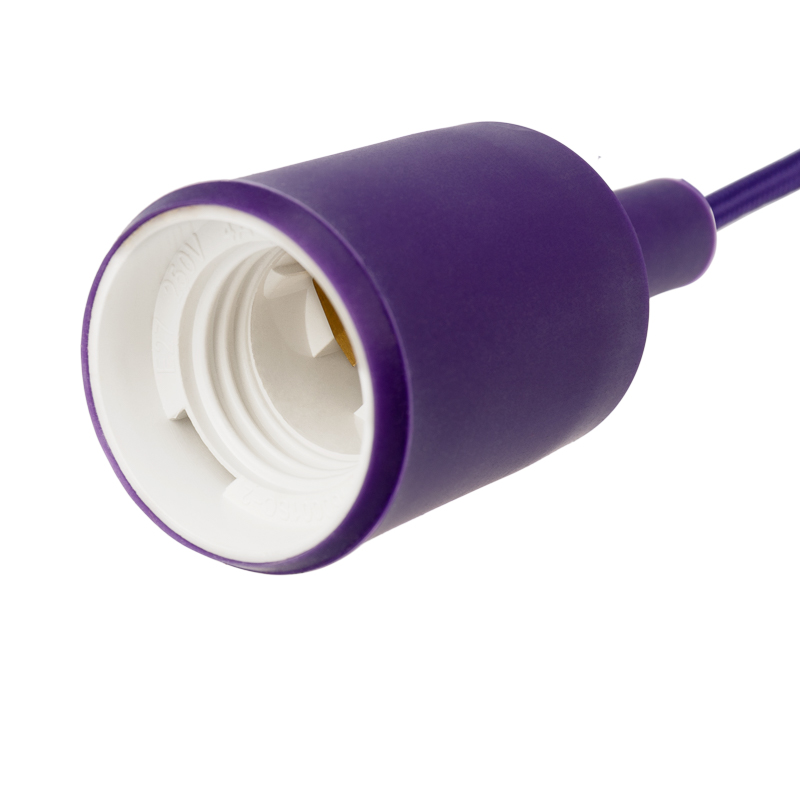 Патрон E27 силиконовый со шнуром - электротехнический прибор, предназначенный для сборки подвесного светильника. Изделие имеет стандартный тип патрона и совместим с любыми типами ламп, имеющими аналогичный цоколь. Особенности:Стильная текстильная оплетка шнураПотолочная чаша для надежности и эстетичности крепленияЦветовое многообразие: белый, черный, красный, зеленый, синий, желтый, фиолетовый. Простая регулировка высотыНапряжение: 220-240 ВЧастота тока: 50/60 Гц Номинальный ток: 4 А Материал: силиконЦвет: фиолетовый