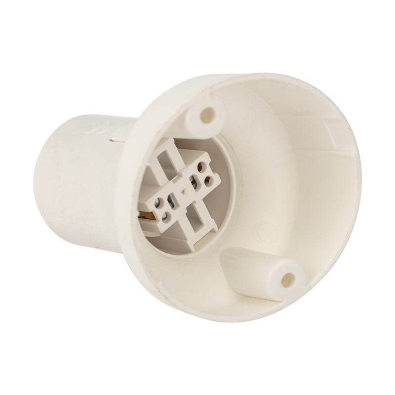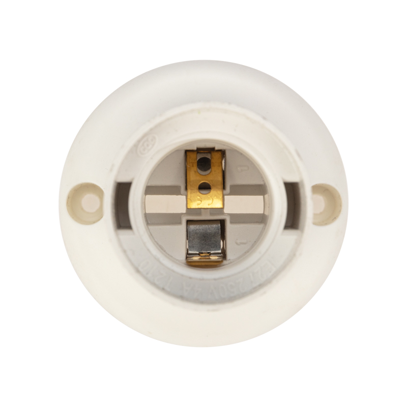 Патрон пластиковый настенный Е27 наклонный служит в качестве комплектующего элемента к бытовым и промышленным светильникам, для фиксации и передачи электрического тока источникам света.
