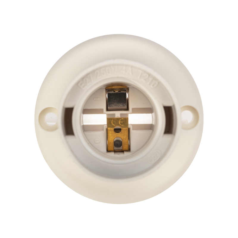 Патрон пластиковый настенный REXANT обеспечивает надежную фиксацию ламп, используется для передачи энергии источникам света. Изделие выполнено из белого термопластика и имеет контактную группу из высококачественных материалов. Патрон не подвержен коррозии, прослужит долгий срок.