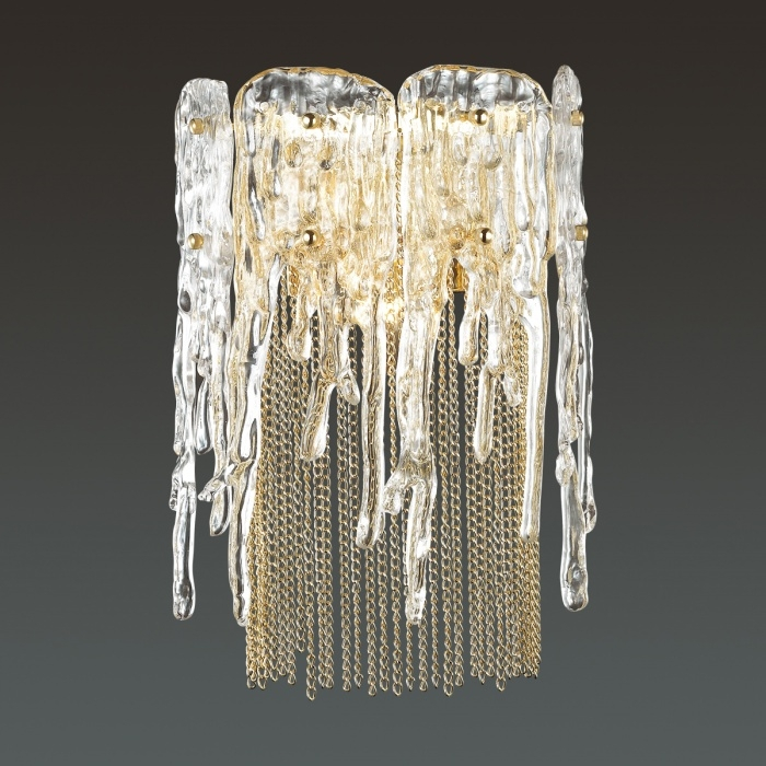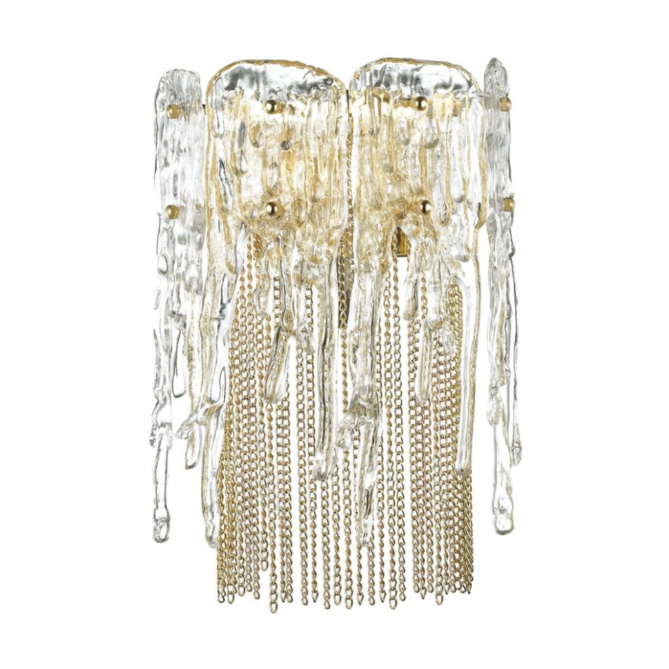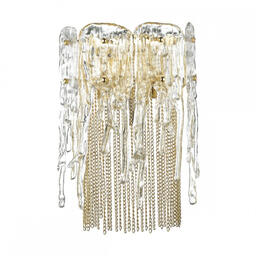 Заводская упаковка нарушена или отсутствует. Товар НОВЫЙ, в полной комплектации. / Прекрасная серия Ester - это сочетание художественного стекла и цепочек в цвет арматуры, которое придает моделям невероятную легкость и изящность. Прозрачные элементы из фигурного стекла образуют элегантный абажур, а цепочки, выполненные из высококачественного металла (не темнеет со временем), словно много — много длинных сережек переливаются в свете люстры или бра.