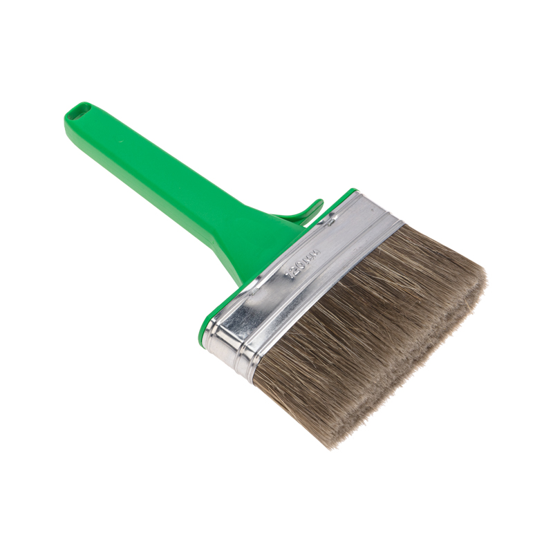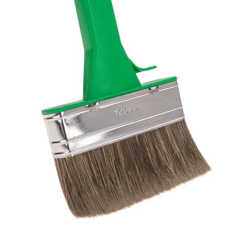 Кисть «Работы по дереву» отлично работает по шероховатым поверхностям, обладает износостойкой смешанной щетиной, отлично покрывающей дерево пропитками, глазурями и краской.Может применяться с эмалями и для проведения фасадных работ. Эргономичная пластиковая ручка кисти удобна в применении. Широкая кисть позволяет равномерно прокрасить большие плоские поверхности, стены и потолки.Технические характеристики:Тип: кисть плоскаяРазмер кисти: 120х25 ммДлина щетины: 57 ммДлина ручки: 145 ммМатериал рукояти: пластикМатериал бандажа: металлЩетина: смешанная