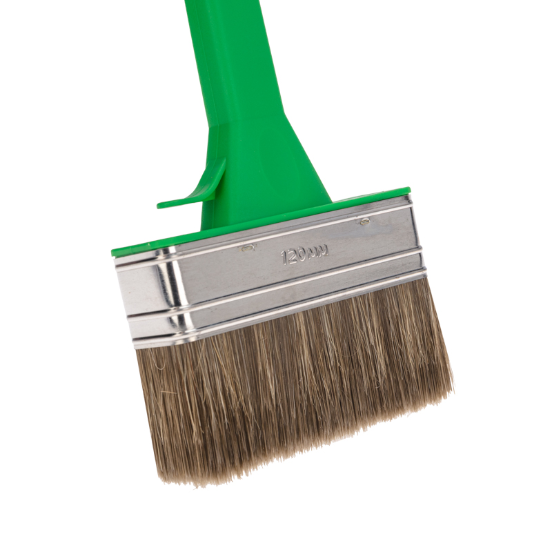 Кисть «Работы по дереву» отлично работает по шероховатым поверхностям, обладает износостойкой смешанной щетиной, отлично покрывающей дерево пропитками, глазурями и краской.Может применяться с эмалями и для проведения фасадных работ. Эргономичная пластиковая ручка кисти удобна в применении. Широкая кисть позволяет равномерно прокрасить большие плоские поверхности, стены и потолки.Технические характеристики:Тип: кисть плоскаяРазмер кисти: 120х35 ммДлина щетины: 57 ммДлина ручки: 145 ммМатериал рукояти: пластикМатериал бандажа: металлЩетина: смешанная