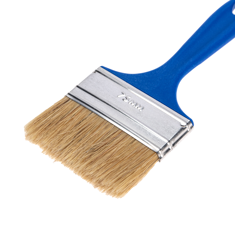 Кисть плоская «Универсальная» 75х8 мм REXANT подходит для покрытия различных поверхностей масляными красками, лаками. Натуральная щетина двойной выварки устойчива к агрессивным составам и надежно закреплена металлическим бандажом. Удобная пластиковая рукоятка обеспечивает комфортное удержание инструмента во время работы.Технические характеристики:Тип: кисть плоскаяРазмер кисти: 75х8 ммДлина щетины: 44 ммДлина ручки: 130 ммМатериал рукояти: пластикМатериал бандажа: металлЩетина: натуральная