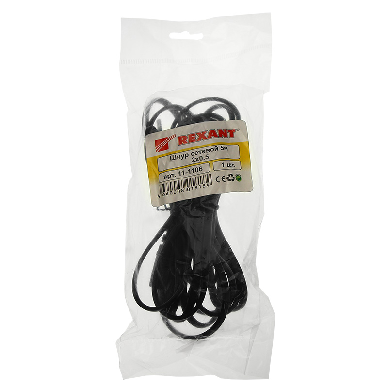 Шнур сетевой 5 м 2х0.5 мм² REXANT предназначен для подключения к сети переменного тока (AC) с напряжением 220 B аудио- и видеоаппаратуры, источников питания ноутбуков, игровых консолей и других приборов, имеющих штыревой сетевой разъем типа С8 (известен из-за его формы как «восьмерка»). Данный сетевой шнур (IEC cord) состоит из двухжильного провода с сечением жил 0.5 мм², с одной стороны литой неразборной плоской вилкой (евро) и с другой — литым гнездовым неполяризованным разъемом типа C7 (евроразъем). Основные характеристики:Тип вилки: евроТип розетки: IEC (С7)Максимальная сила тока: 2.5 АИзоляция жил и общая оболочка изготовлена из ПВХДлина провода: 5 мШнур имеет многопроволочные жилы, заключенные в эластичную двойную изоляцию из ПВХ, что делает его максимально гибким и увеличивает срок эксплуатации изделия.