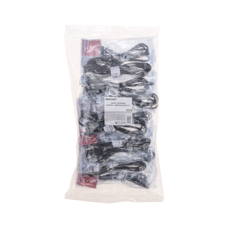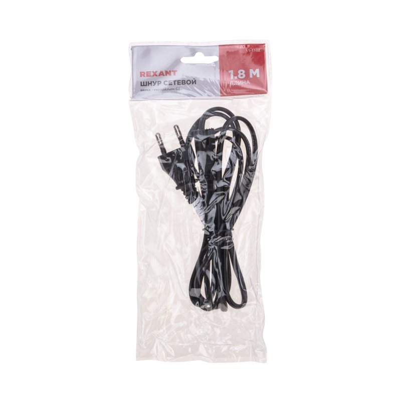 Шнур сетевой 1.8 м 2x0.75 мм² REXANT предназначен для подключения к сети переменного тока (AC) с напряжением 220 B аудио- и видеоаппаратуры, источников питания ноутбуков, игровых консолей и других приборов, имеющих штыревой сетевой разъем типа С8 (известен из-за его формы как «восьмерка»). Данный сетевой шнур (IEC cord) оснащен с одной стороны литой неразборной плоской вилкой (евро), с другой — литым гнездовым неполяризованным разъемом типа C7 (евроразъем) и двухжильным проводом с сечением жил 0.75 мм². Основные характеристики:Тип вилки: евроТип розетки: IEC (С7)Максимальная сила тока: 2.5 АИзоляция жил и общая оболочка изготовлена из ПВХДлина провода: 1.8 метраШнур имеет многопроволочные жилы, заключенные в эластичную двойную изоляцию из ПВХ, что делает его максимально гибким и увеличивает срок эксплуатации изделия.
