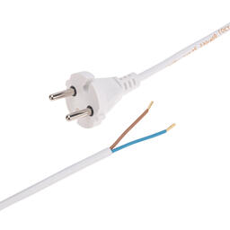 Провод ПВС сечением 2х0,75 мм² номинальным током 10 А с подготовленными (зачищенными) контактами укомплектован литой неразборной плоской вилкой (Евро).