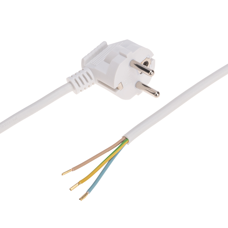 Провод ПВС сечением 3х1,0 мм² номинальным током 10 А с подготовленными (зачищенными) контактами укомплектован литой неразборной угловой вилкой (Евро).