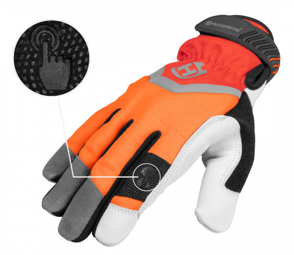 Перчатки с защитой Husqvarna Technical Class 1 имеют размер 12/XXL, разработаны специально для людей, работающих с бензопилой. Основание ладоши сделано из натуральной козьей кожи, пальцы имеют дополнительную защиту. Перчатки помогут защитить вашу руку при встрече с цепом бензопилы, при их разработке были учтены все требования защиты. Еще одним преимуществом данной экипировки, является наличие специальной вставки на указательном пальце, которая позволяет работать с телефоном не снимая перчатку.