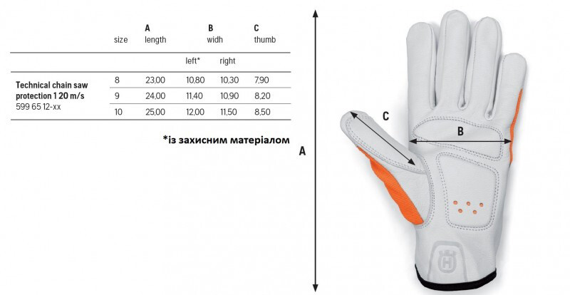 Перчатки с защитой Husqvarna Technical Class 1 (20 м/с) 12/XXL...