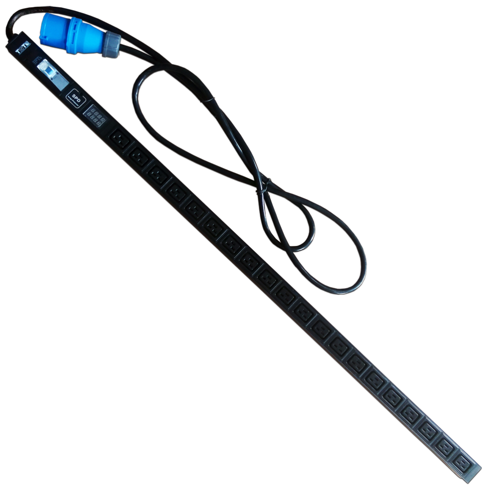 Вертикальный блок розеток, 20xC19, 250V, 32A, A/V-метр, шнур 3 метра, вилка IEC309