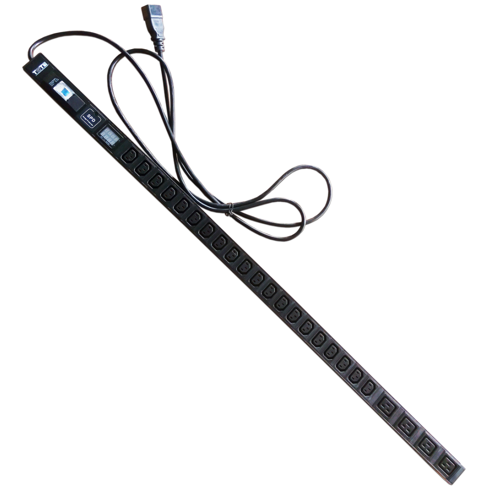 Вертикальный блок розеток, 4xC19 + 20xC13, 250V, 16A, A/V-метр, шнур 3 метра, вилка C20
