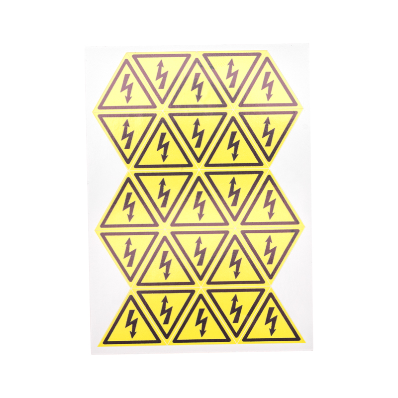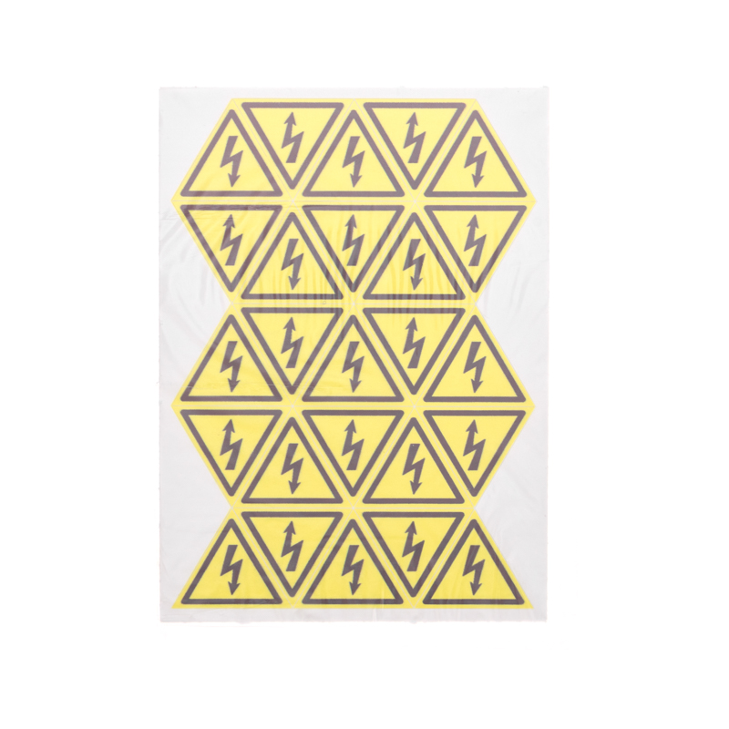 Набор знаков электробезопасности «Опасность поражения электротоком». Данные знаки предназначены для размещения на электрооборудовании и приборах, опорах линий электропередачи, дверцах силовых щитков, на электротехнических панелях и шкафах, а также на ограждениях токоведущих частей оборудования, механизмов, приборов, с целью сообщения об опасности поражения электротоком. Такие наклейки предупреждают и информируют окружающих. Знаки изготовлены на основе самоклеящейся пленки, предназначенной для информационных знаков на улице и в помещениях.• Знаки хорошо видны и сохраняют яркость цветов долгое время даже при постоянном использовании.• Имеют хорошую устойчивость к смазыванию, стойкость к прямым солнечным лучам, перепадам температуры, мелким механическим воздействиям.• Выполнены из прочного, износостойкого материала, легко клеятся, крепко держатся и не оставляют следов после снятия (* предназначены для нанесения на ровную сухую поверхность).Характеристики:Тип продукта: наклейка (ПВХ пленка с полуглянцевой поверхностью, бумажная подложка)Комплект набора: 100 наклеек размером 25х25х25 мм ( 4 листа по 25 наклеек на каждом)Самоклеящийся: да Формат: треугольникИзображение: картинкаЦвет: желтый, черныйСтрана-производитель: Россия