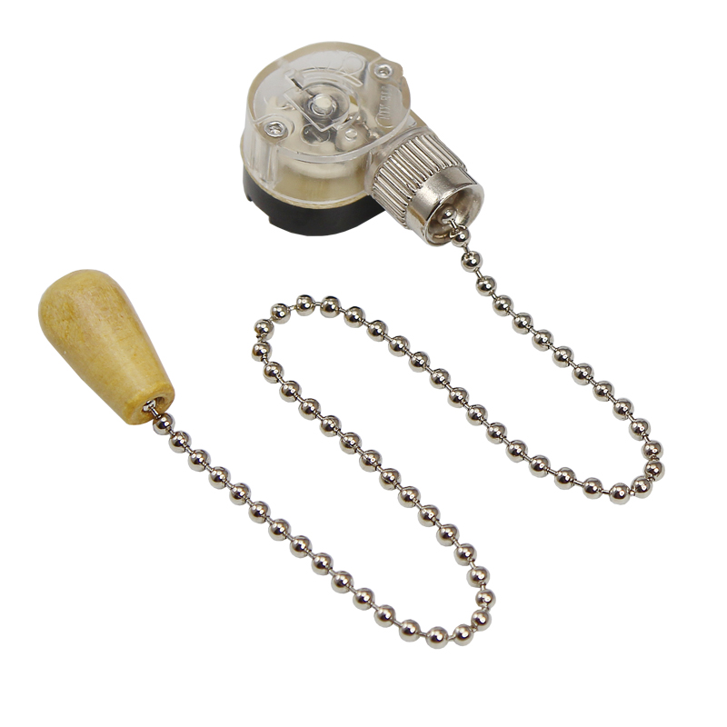 Выключатель для настенного светильника с хромированной цепочкой и деревянным наконечником. Длина цепочки 270 мм. Цвет цепочки серебро. Напряжение 220 В.
