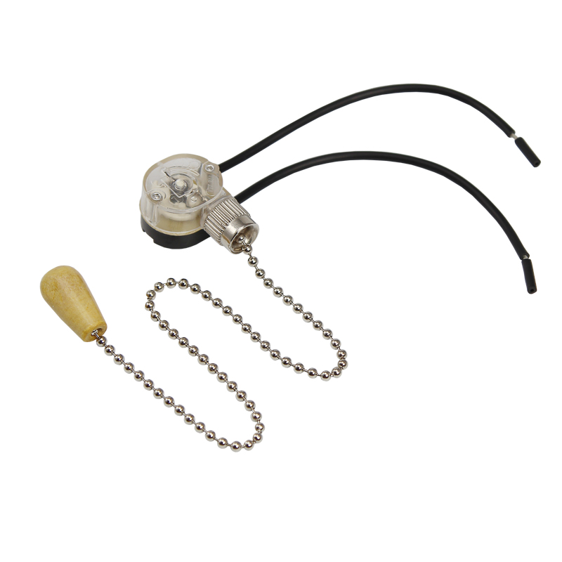 Выключатель для настенного светильника с хромированной цепочкой, проводами и деревянным наконечником. Длина цепочки 270 мм. Цвет цепочки серебро. Напряжение 220 В. Длина провода 120 мм.