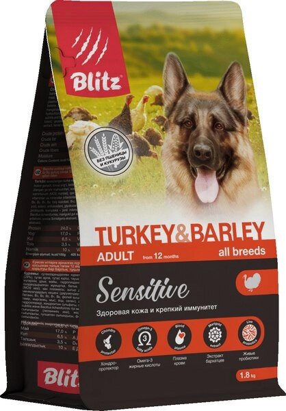 Сухой корм для собак Blitz Pets Adult Turkey & Barley / 4223