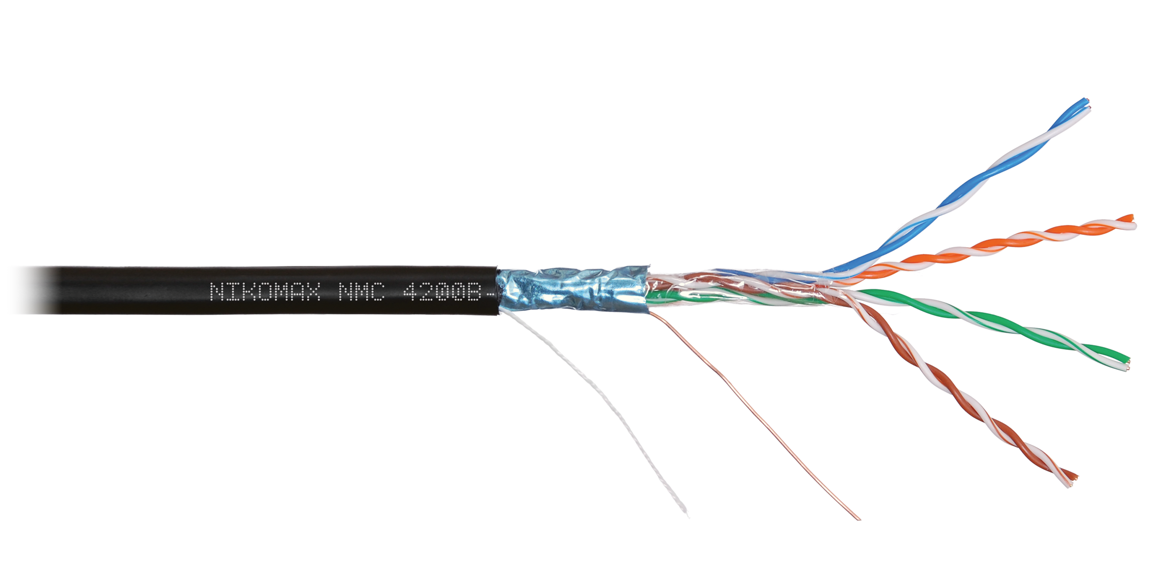 Кабель NIKOMAX F/UTP 4 пары, Кат.5e (Класс D), тест по ISO/IEC, 100МГц, одножильный, BC (чистая медь), 24AWG (0,51мм), полиэтилен, внешний, черный, 305м - гарантия: 3 года