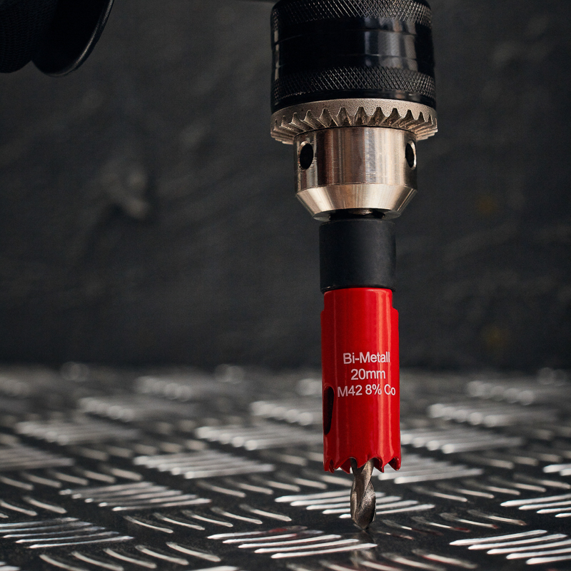 Коронка имеет переменный шаг зубьев 4-6 з/д. Применяется для стали, металла, пластика, дерева, гипсокартона. Сверление осуществляется в безударном режиме. Применяется совместно со сверлильным станком, перфоратором (без удара), дрелью, шуруповертом. Сверление металла/сталей необходимо осуществлять с применением СОЖ.