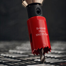 Коронка имеет переменный шаг зубьев 4-6 з/д. Применяется для стали, металла, пластика, дерева, гипсокартона. Сверление осуществляется в безударном режиме. Применяется совместно со сверлильным станком, перфоратором (без удара), дрелью, шуруповертом. Сверление металла/сталей необходимо осуществлять с применением СОЖ.