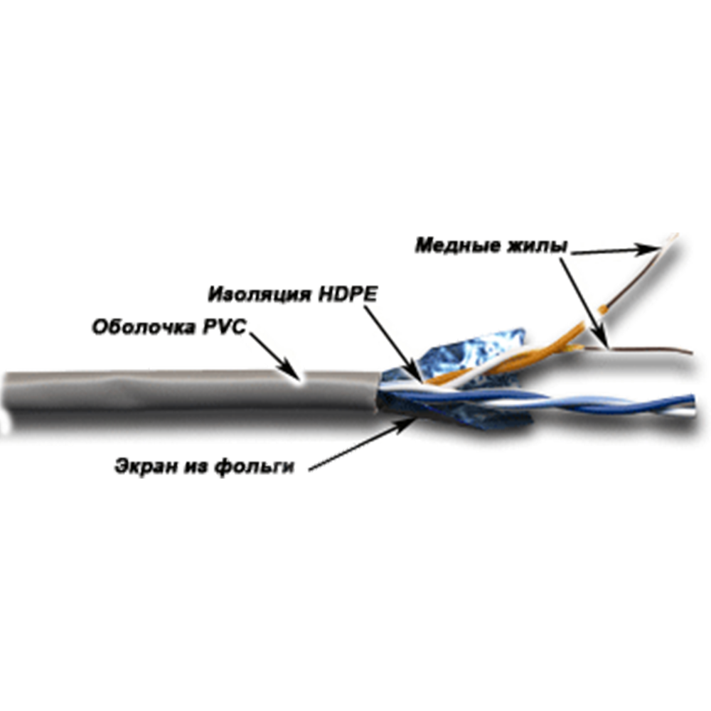 Кабель TWT FTP, 2 пары, Кат.5е, PVC, 305 метров, серый