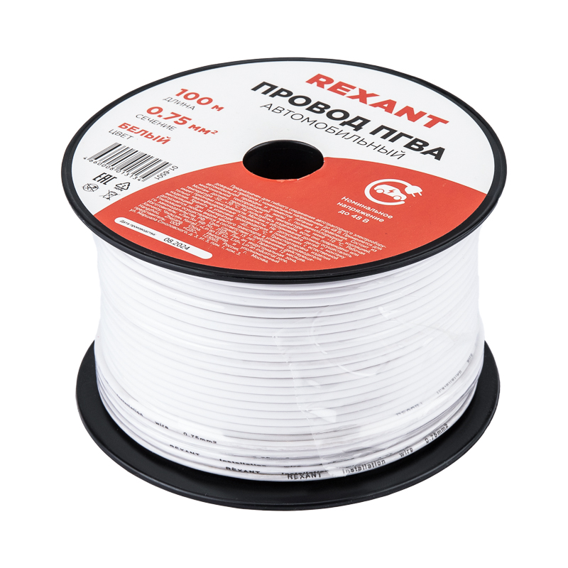 Провод ПГВА REXANT предназначен для гибкого соединения автотракторного электрооборудования и приборов с номинальным напряжением до 48 В, изготавливается для автомобильной проводки и элементов питания и управления. Состоит из многожильной токопроводящей жилы с поливинилхлоридной изоляцией. Расшифровка провод ПГВА: П — Провод Г — Гибкий В — Изоляция из поливинилхлоридного пластикатаА — Автотракторный Технические характеристики:Номинальное напряжение: до 48 ВЭлектрическое сопротивление изоляции на длине 1 км: не менее 3,0 мОмИзоляция жилы: из ПВХ пластикатаРасцветка провода имеет сплошную расцветкуКласс гибкости: 3Минимальный радиус изгиба: не менее 10-кратного значения минимального размера проводаПредельно допустимая рабочая температура: –50...+70 °ССрок службы: 15 лет