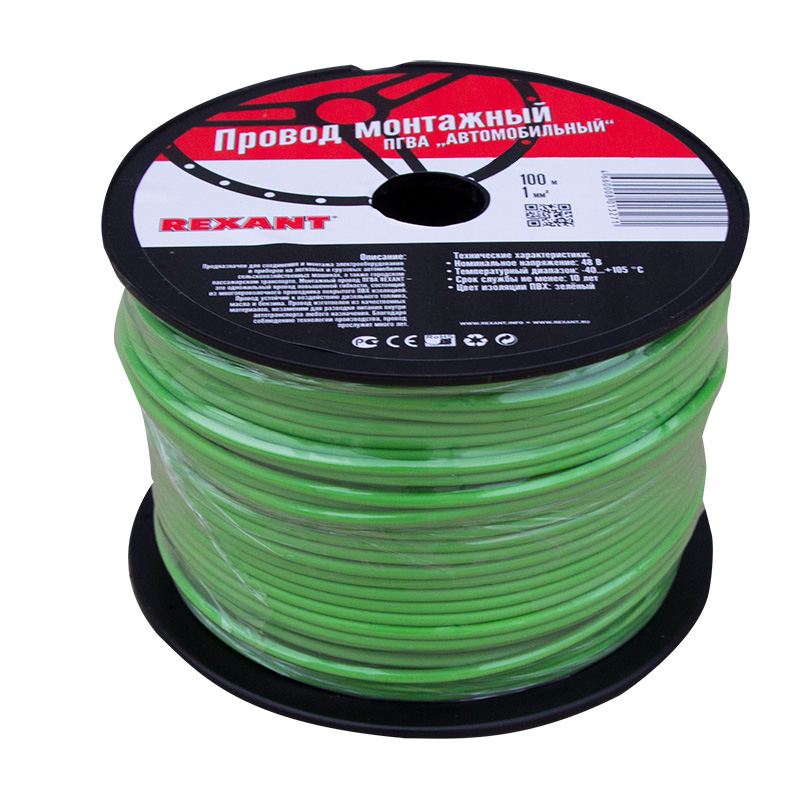 Провод ПГВА REXANT предназначен для гибкого соединения автотракторного электрооборудования и приборов с номинальным напряжением до 48 В, изготавливается для автомобильной проводки и элементов питания и управления. Состоит из многожильной токопроводящей жилы с поливинилхлоридной изоляцией. Расшифровка провод ПГВА: П — Провод Г — Гибкий В — Изоляция из поливинилхлоридного пластикатаА — Автотракторный Технические характеристики:Номинальное напряжение: до 48 ВЭлектрическое сопротивление изоляции на длине 1 км: не менее 3,0 мОмИзоляция жилы: из ПВХ пластикатаРасцветка провода имеет сплошную расцветкуКласс гибкости: 3Минимальный радиус изгиба: не менее 10-кратного значения минимального размера проводаПредельно допустимая рабочая температура: –50...+70 °ССрок службы: 15 лет