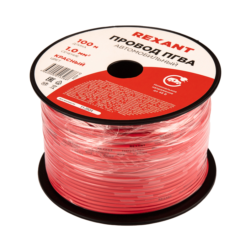 Провод ПГВА REXANT предназначен для гибкого соединения автотракторного электрооборудования и приборов с номинальным напряжением до 48 В, изготавливается для автомобильной проводки и элементов питания и управления. Состоит из многожильной токопроводящей жилы с поливинилхлоридной изоляцией. Расшифровка провод ПГВА: П — Провод Г — Гибкий В — Изоляция из поливинилхлоридного пластикатаА — Автотракторный Технические характеристики:Номинальное напряжение: до 48 ВЭлектрическое сопротивление изоляции на длине 1 км: не менее 3,0 мОмИзоляция жилы: из ПВХ пластикатаРасцветка провода имеет сплошную расцветкуКласс гибкости: 3Минимальный радиус изгиба: не менее 10-кратного значения минимального размера проводаПредельно допустимая рабочая температура: –50...+70 °ССрок службы: 15 лет