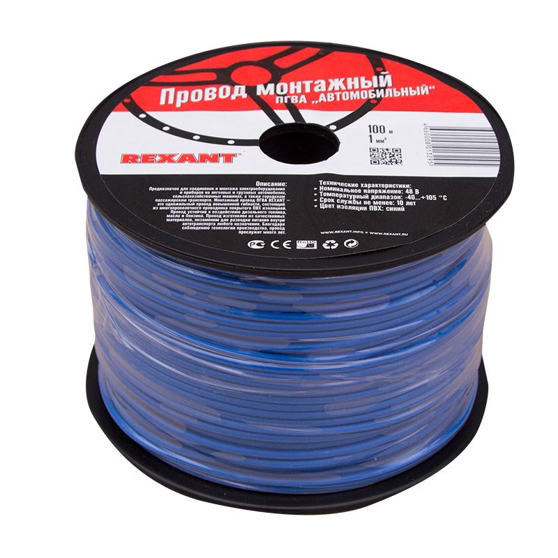 Провод ПГВА REXANT предназначен для гибкого соединения автотракторного электрооборудования и приборов с номинальным напряжением до 48 В, изготавливается для автомобильной проводки и элементов питания и управления. Состоит из многожильной токопроводящей жилы с поливинилхлоридной изоляцией. Расшифровка провод ПГВА: П — Провод Г — Гибкий В — Изоляция из поливинилхлоридного пластикатаА — Автотракторный Технические характеристики:Номинальное напряжение: до 48 ВЭлектрическое сопротивление изоляции на длине 1 км: не менее 3,0 мОмИзоляция жилы: из ПВХ пластикатаРасцветка провода имеет сплошную расцветкуКласс гибкости: 3Минимальный радиус изгиба: не менее 10-кратного значения минимального размера проводаПредельно допустимая рабочая температура: –50...+70 °ССрок службы: 15 лет