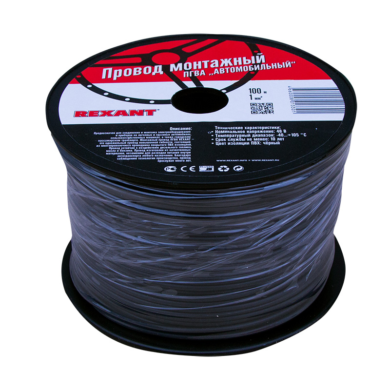 Провод ПГВА REXANT предназначен для гибкого соединения автотракторного электрооборудования и приборов с номинальным напряжением до 48 В, изготавливается для автомобильной проводки и элементов питания и управления. Состоит из многожильной токопроводящей жилы с поливинилхлоридной изоляцией. Расшифровка провод ПГВА: П — Провод Г — Гибкий В — Изоляция из поливинилхлоридного пластикатаА — Автотракторный Технические характеристики:Номинальное напряжение: до 48 ВЭлектрическое сопротивление изоляции на длине 1 км: не менее 3,0 мОмИзоляция жилы: из ПВХ пластикатаРасцветка провода имеет сплошную расцветкуКласс гибкости: 3Минимальный радиус изгиба: не менее 10-кратного значения минимального размера проводаПредельно допустимая рабочая температура: –50...+70 °ССрок службы: 15 лет