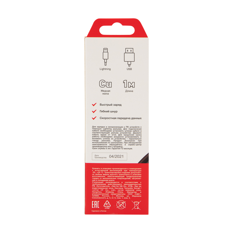 USB кабель iPhone5 черный. Предназначен для зарядки и синхронизации с ПК техники Apple с помощью USB разъема. Длина: 1 м