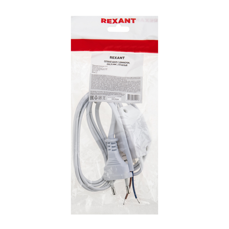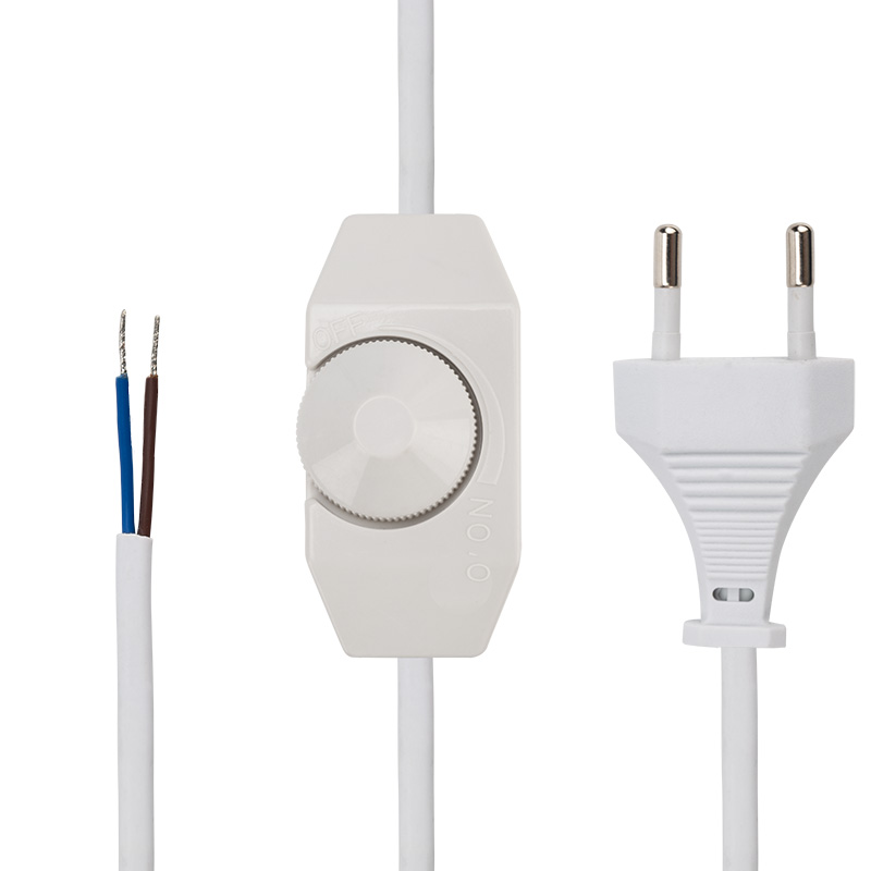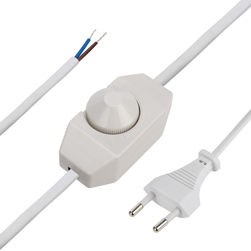 Сетевой шнур с диммером предназначен для подключения бытовых приборов, осветительной техники и т. д. Шнур состоит из провода ШВВП сечением 0,75 мм², укомплектованного литой неразборной плоской вилкой (Евро), номинальным током 2 А, с подготовленными (зачищенными и лужеными) контактами, посередине провода расположен диммер в корпусе из ABC пластика. Напряжение: 250 ВНоминальный ток: 2 АСечение проводников: 2х0,75 мм²Длина шнура: 2 мЦвет: белый Диммер: да