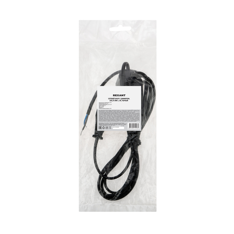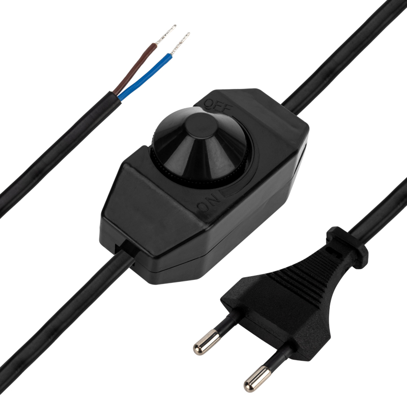 Сетевой шнур с диммером предназначен для подключения бытовых приборов, осветительной техники и т. д. Шнур состоит из провода ШВВП сечением 0,75 мм², укомплектованного литой неразборной плоской вилкой (Евро), номинальным током 2 А, с подготовленными (зачищенными и лужеными) контактами, посередине провода расположен диммер в корпусе из ABC пластика. Напряжение: 250 ВНоминальный ток: 2 АСечение проводников: 2х0,75 мм²Длина шнура: 2 мЦвет: черный Диммер: да