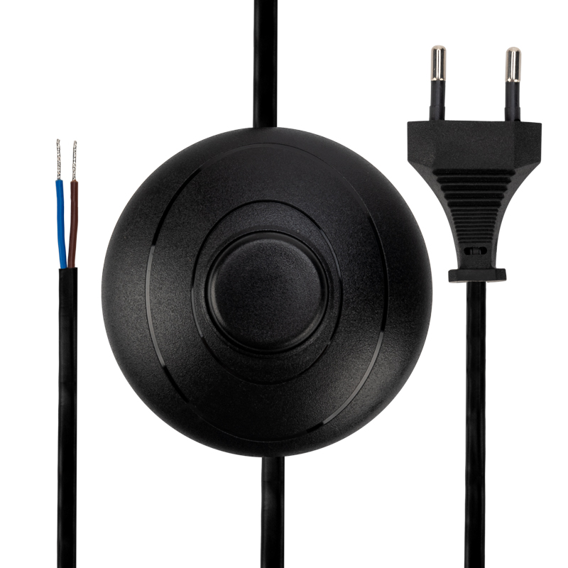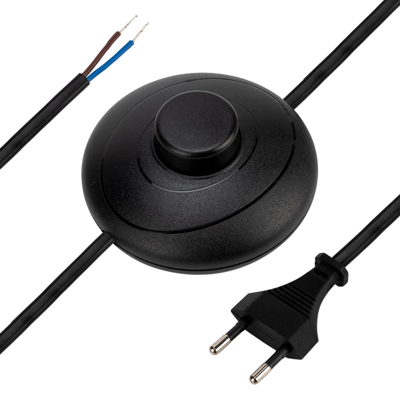 Сетевой шнур с напольным переключателем предназначен для подключения бытовых приборов, осветительной техники и т. д. Шнур состоит из провода ШВВП сечением 0,75 мм², укомплектованного литой неразборной плоской вилкой (Евро), номинальным током 4 А, с подготовленными (зачищенными и лужеными) контактами, посередине провода расположен напольный переключатель в корпусе из ABC пластика. Напряжение: 250 ВНоминальный ток: 4 АСечение проводников: 2х0,75 мм²Длина шнура: 2,5 мЦвет: черный Напольный переключатель: есть